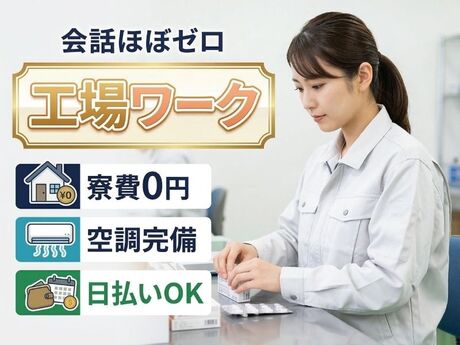 【ア】「前の職場は人間関係がしんどかった」そんな方へ/会話ほぼゼロの工場ワーク/寮費0円・空調完備・日払いOK・WEB面談OK・履歴書不要