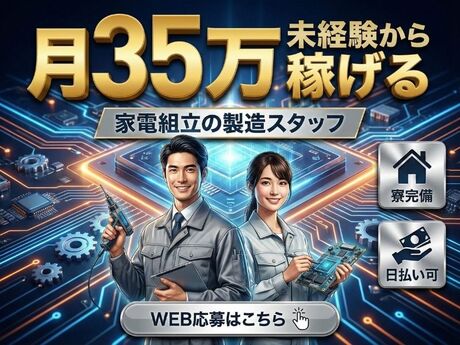 未経験から月35万稼げる/家電組立の製造スタッフ/寮完備で安心スタート