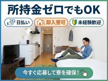 □ 金欠でもOK所持金が少なくても応募可能、生活再スタートをサポート□ 日払い・給料前払い可能働いた分を早めに受け取れる、収入面の不安を軽減□ 即日入寮OK住まい探し不要、仕事と住居を同時に確保、寮費無料の案件あり